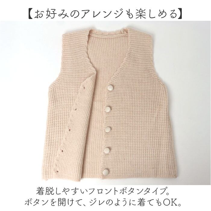 ・着脱しやすいフロントボタンタイプ。ボタンを開けて、ジレのように着てもOK。