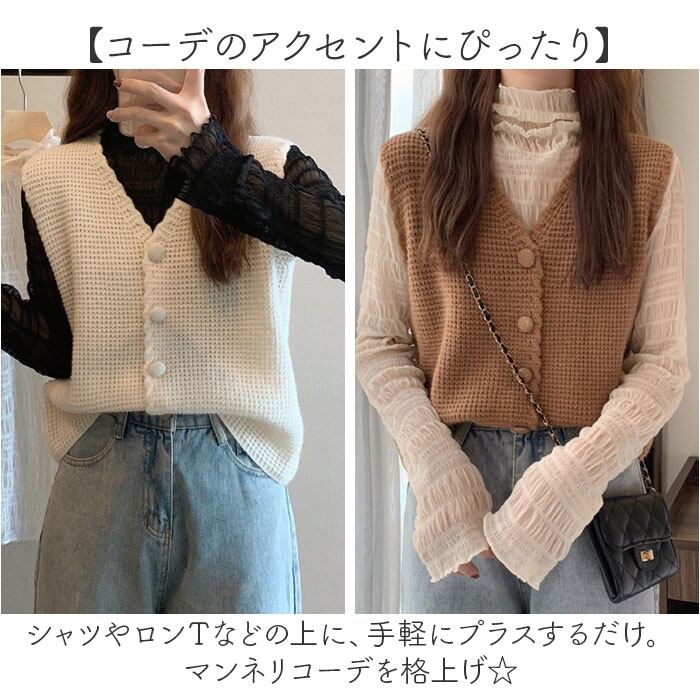 1枚持っていれば、コーデの幅が広がる◎ラフに着こなせる「ニットベスト」。