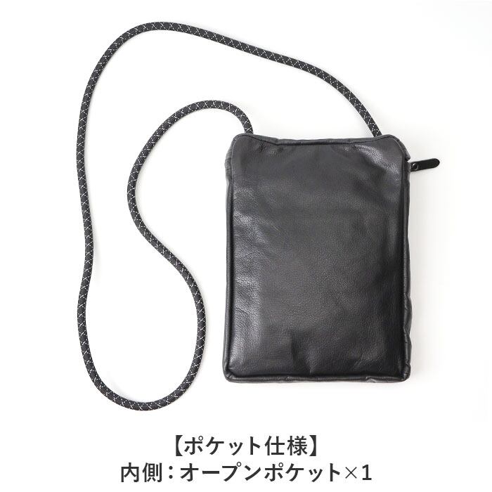 ・レザーの素材感を活かしたデザインに、スポーティーなショルダーコードがアクセント。