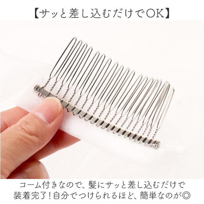 ・コーム付きなので、髪にサッと差し込むだけで装着完了!自分でつけられるほど、簡単なのが◎