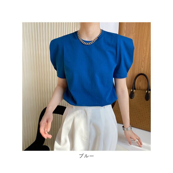 カットソー 半袖 レディース 通販 バルーンスリーブ パフスリーブ ぽわん袖 ポワン袖 トップス tシャツ レディーストップス きれいめ 無地 シンプル かわいい 可愛い 上品 エレガント 大人 カジュアル 春 夏 オフィス 通勤 通学