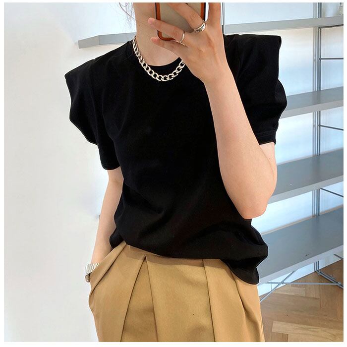 ・肩部分にタックが入っており、存在感のある1枚に。気になる二の腕まわりをふわっとカバー◎