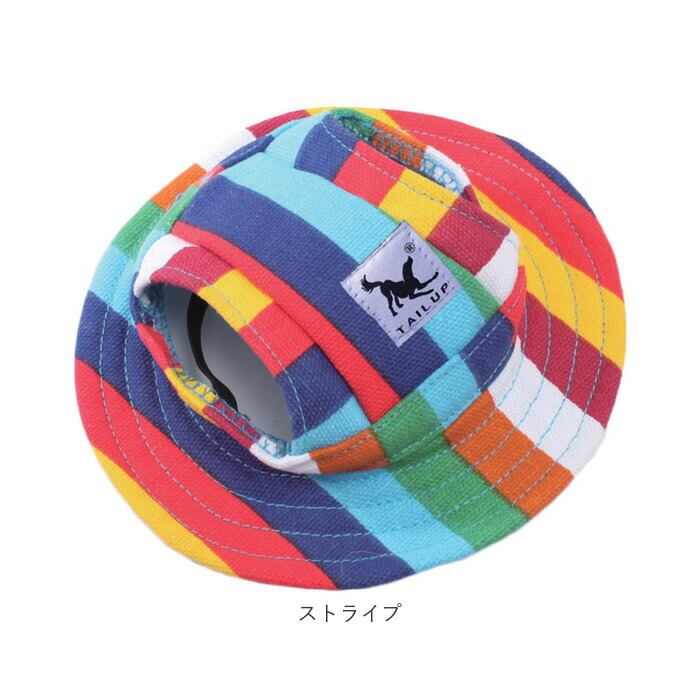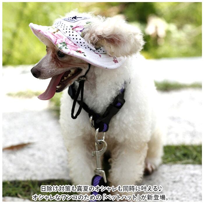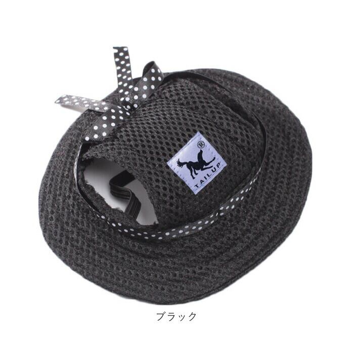 ・夏の日差しを遮る丸いひさしが広がり、クラウンサイドのスリットからはぴょこんとお耳が出せて、気持ちよくかぶれるペット用帽子。