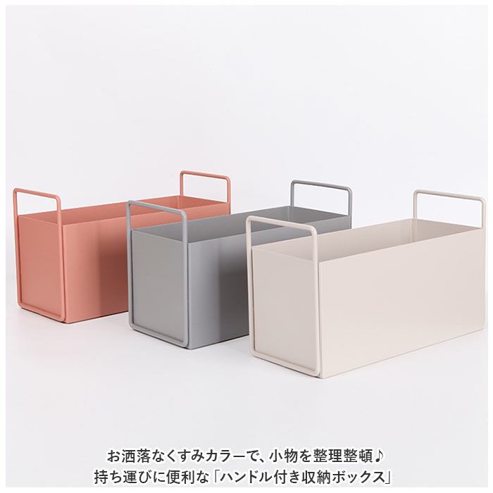 ・お洒落なくすみカラーで、小物を整理整頓♪持ち運びに便利な「ハンドル付き収納ボックス」