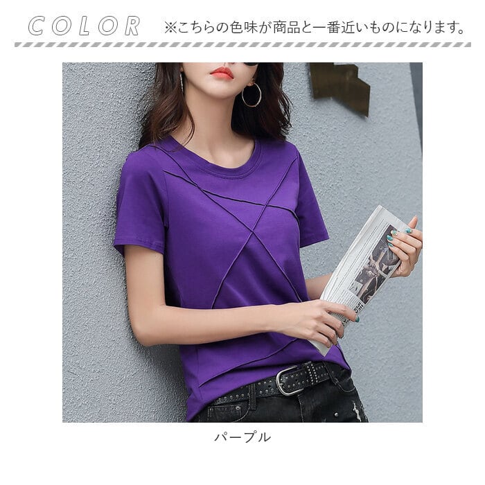 tシャツ レディース 半袖 通販 半袖tシャツ カットソー Tシャツ シャツ トップス きれいめ おしゃれ カジュアル シンプル 無地 インナー 白 ホワイト ピンク パープル ブルー 青