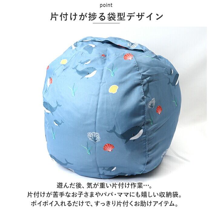 ・遊んだ後、気が重い片付け作業…。片付けが苦手なお子さまやパパ・ママにも嬉しい収納袋。ポイポイ入れるだけで、すっきり片付くお助けアイテム。