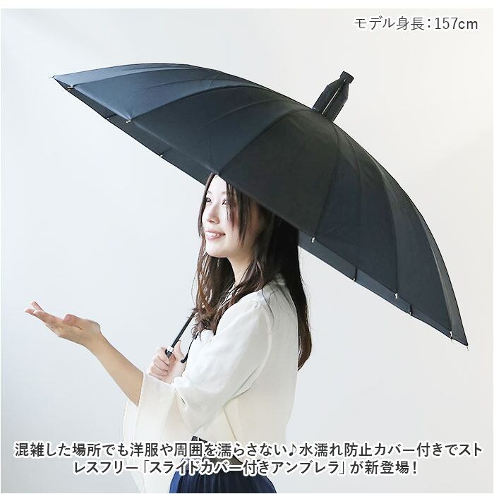 雨傘 レディース 長傘 おしゃれ 楽天 16本骨傘 ジャンプ傘 傘 かさ カサ カバー付き傘 メンズ シンプル 通勤 通学 雨 梅雨 ショッピング スライドケース 濡れない 便利 機能 車 電車 かわいい カワイイ 婦人傘 紳士傘