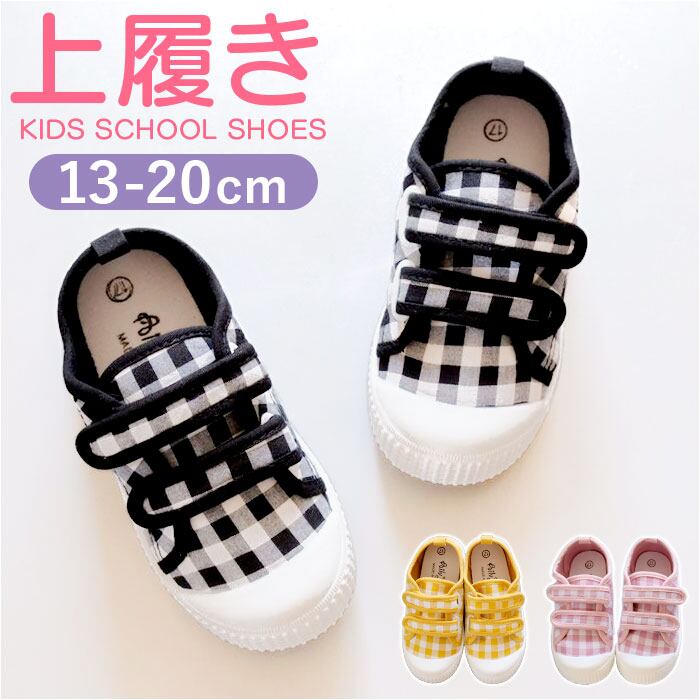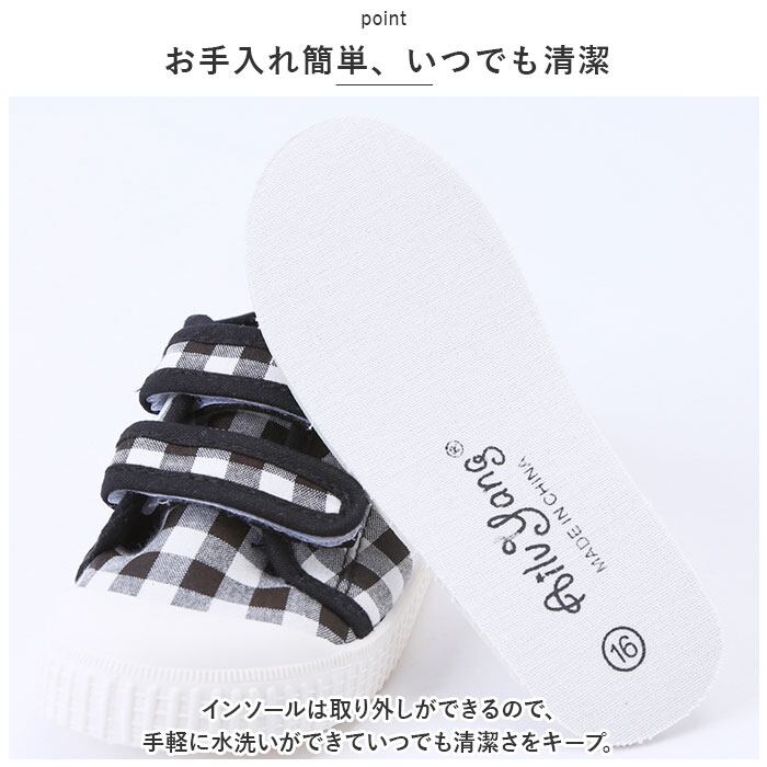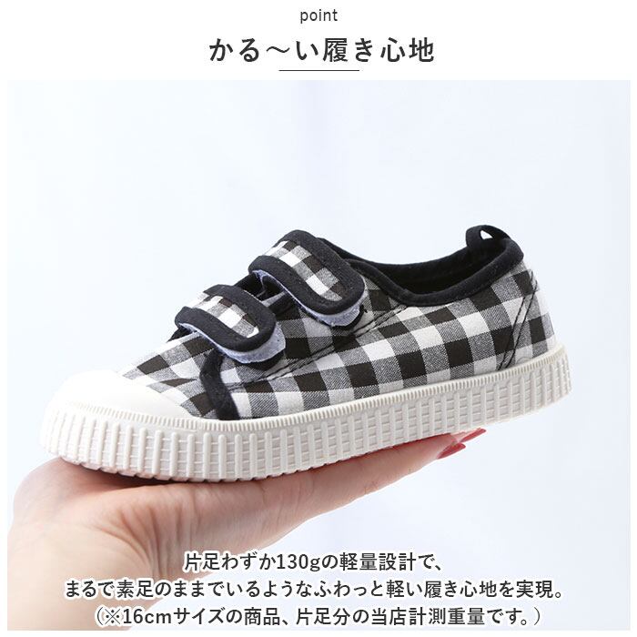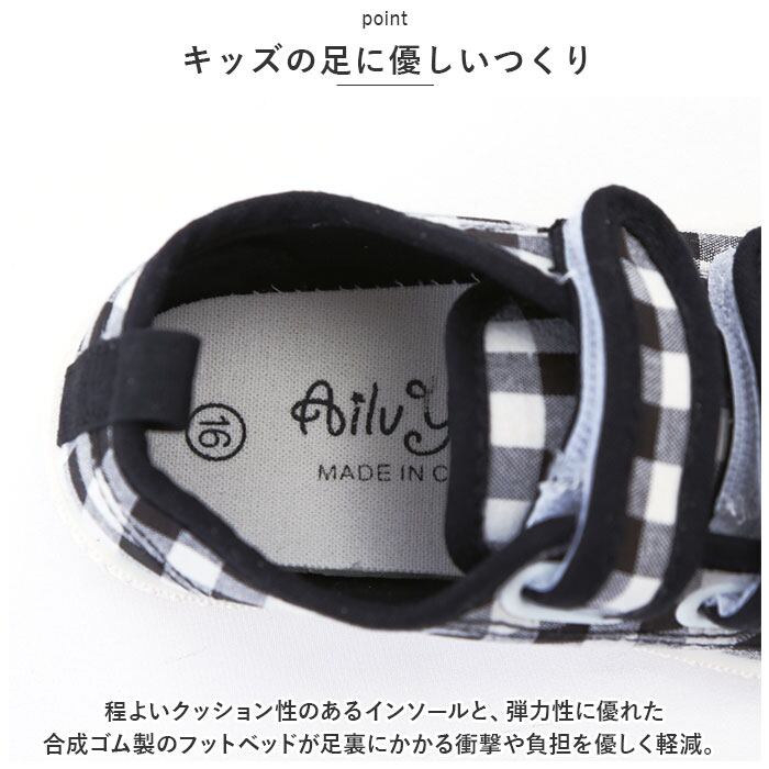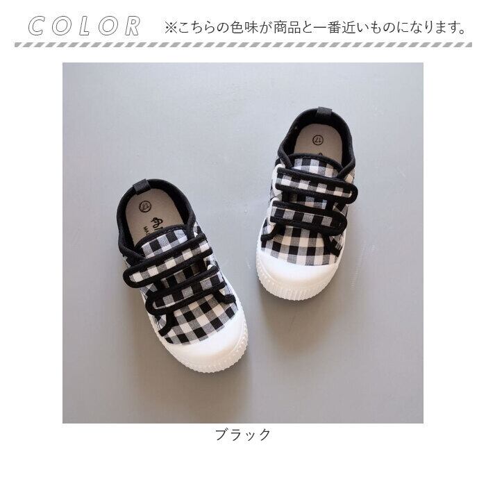 ・お友だちの上履きと間違えない、個性的なデザイン。ポップ&カジュアルなギンガムチェックが、足元をちょっぴり大人の雰囲気にコーディネート。
