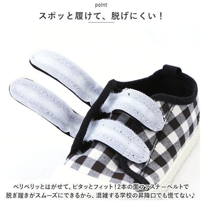 ・ペリペリッとはがせて、ピタッとフィット!2本の面ファスナーベルトで脱ぎ履きがスムーズにできるから、混雑する学校の昇降口でも慌てない♪