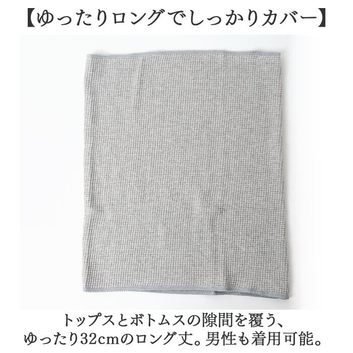 ・トップスとボトムスの隙間を覆う、ゆったり32cmのロング丈。男性も着用可能。