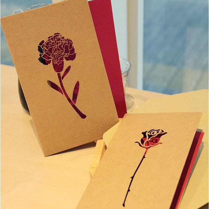 ・ナチュラルなクラフト紙に、透かし彫りでモチーフや文字を表現。もらって嬉しいカード♪