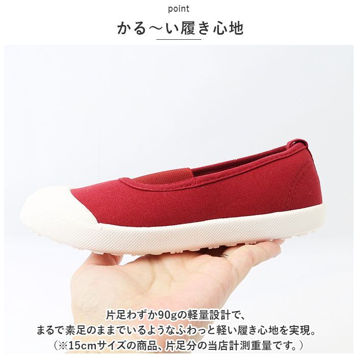 ・片足わずか90gの軽量設計で、まるで素足のままでいるようなふわっと軽い履き心地を実現。(※15cmサイズの商品、片足分の当店計測重量です。)