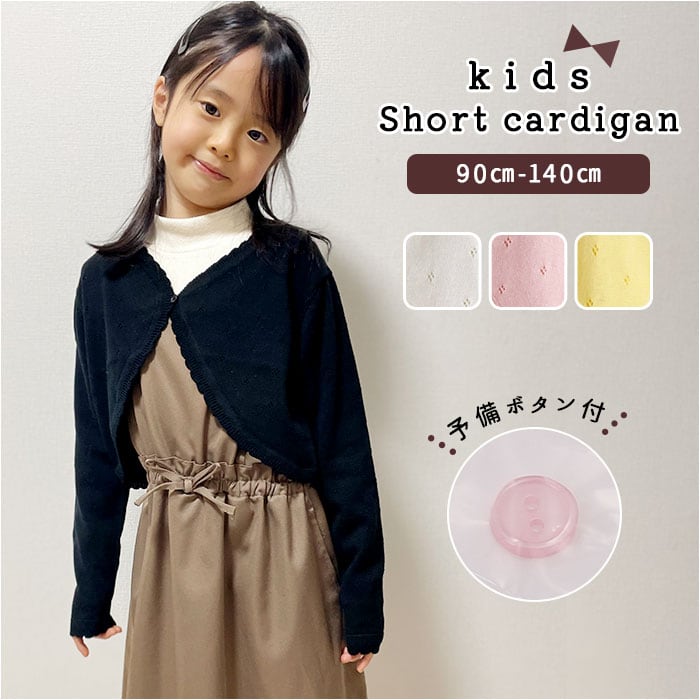 カーディガン キッズ ショート丈 長袖 通販 ボレロ フォーマル 羽織り 上着 はおりもの かわいい 100% コットン 綿 子供 こども 子ども シンプル おしゃれ 子供服 発表会 パーティードレス 韓国 防寒
