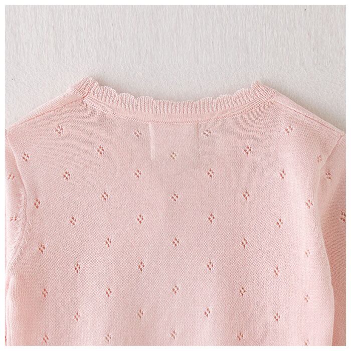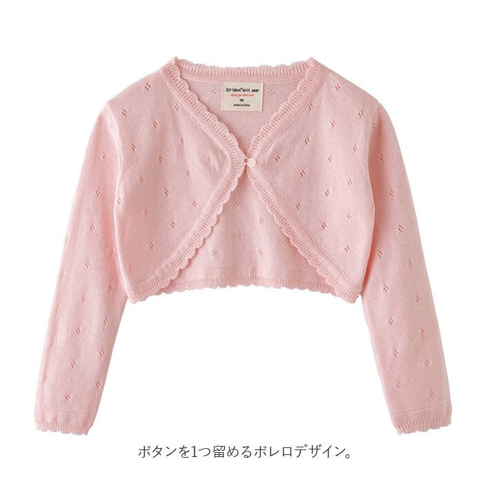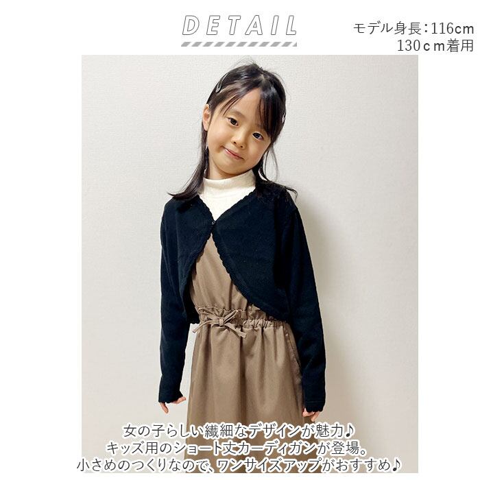 ・女の子らしい繊細なデザインが魅力♪キッズ用のショート丈カーディガンが登場。