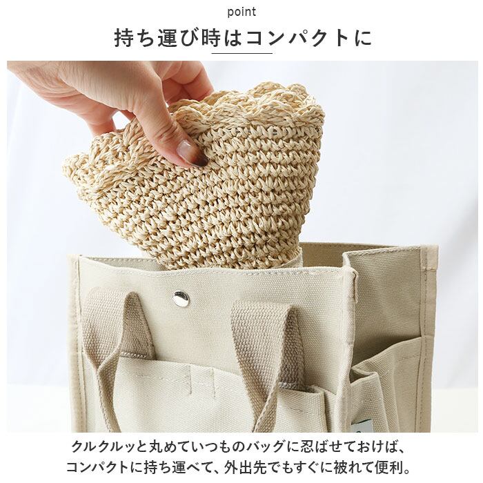 ・クルクルッと丸めていつものバッグに忍ばせておけば、コンパクトに持ち運べて、外出先でもすぐに被れて便利。