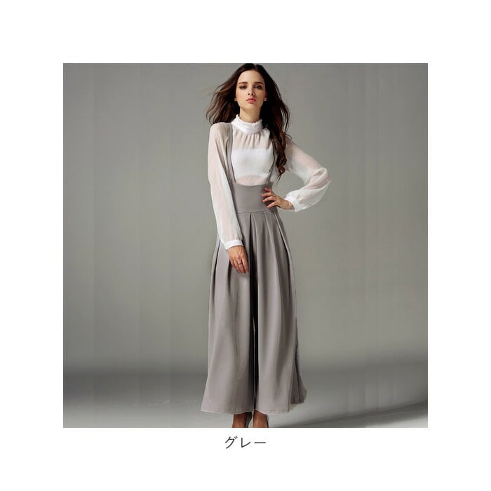 ワイドパンツ レディース 通販 サロペット ハイウエスト ガウチョパンツ ガウチョ パンツ サスペンダー フレアパンツ オールインワン 体型カバー 大きいサイズ かわいい おしゃれ ベージュ ブラック グレー