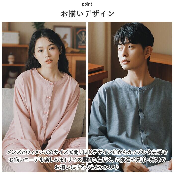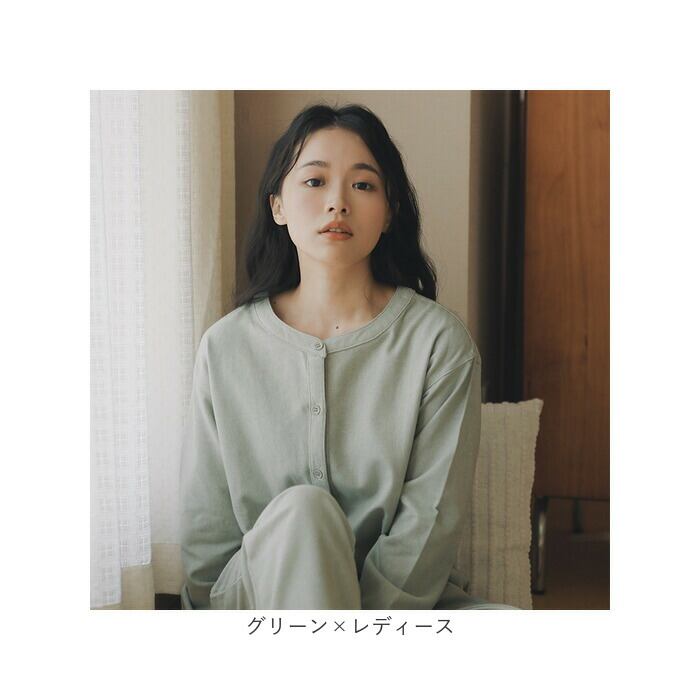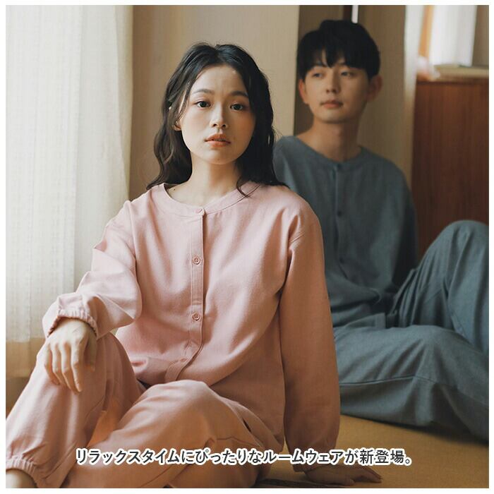 パジャマ 長袖 上下セット 通販 ルームウェア 部屋着 室内着 ナイトウェア ホームウェア 前開き 綿 コットン レディース メンズ ユニセックス 秋 冬 襟なし リラックス
