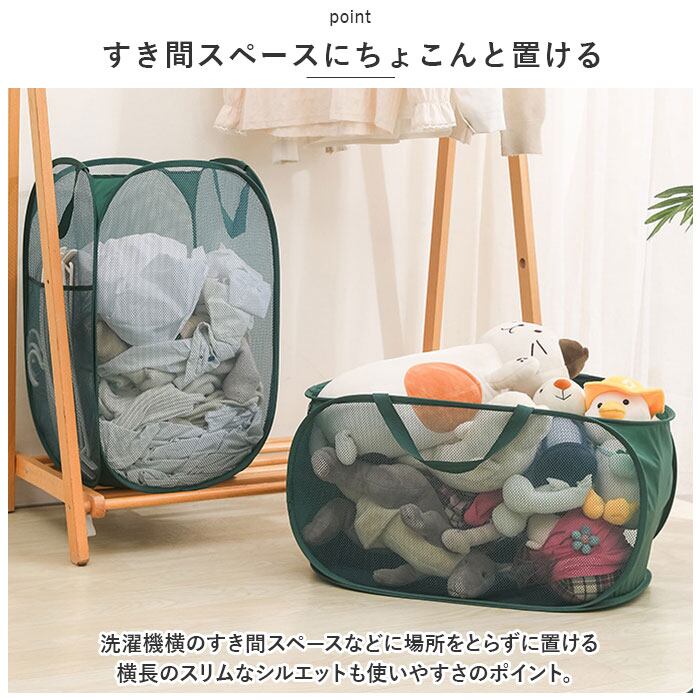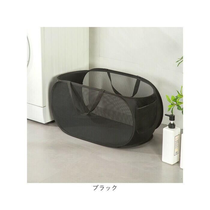 ・ワイヤーやメッシュ生地でふわりと軽量に仕上げ、両サイドには便利な持ち手付き!洗濯後の衣類を2階のバルコニーに運んだり、コインランドリーやクリーニング店への移動も楽ちん。