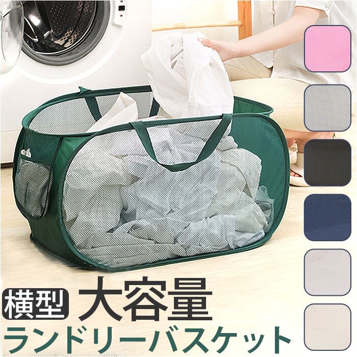・たくさんの洗濯物がすっぽり収まる大容量!折りたたんで持ち運びに便利な「ランドリーバスケット(横型タイプ)」が新登場。