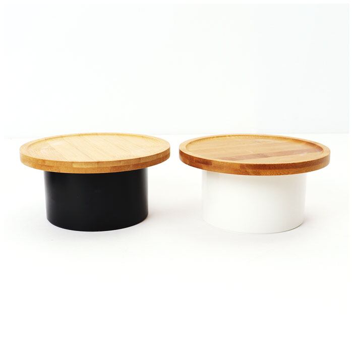 ・温かみのあるバンブー素材のトレイと、マットな質感の脚(台座)。お部屋の雰囲気を邪魔しない、スタイリッシュなデザインがポイント。