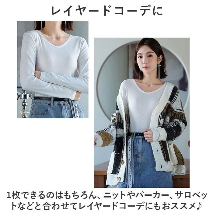 長袖Tシャツ インナー Vネック レディース ylm3199