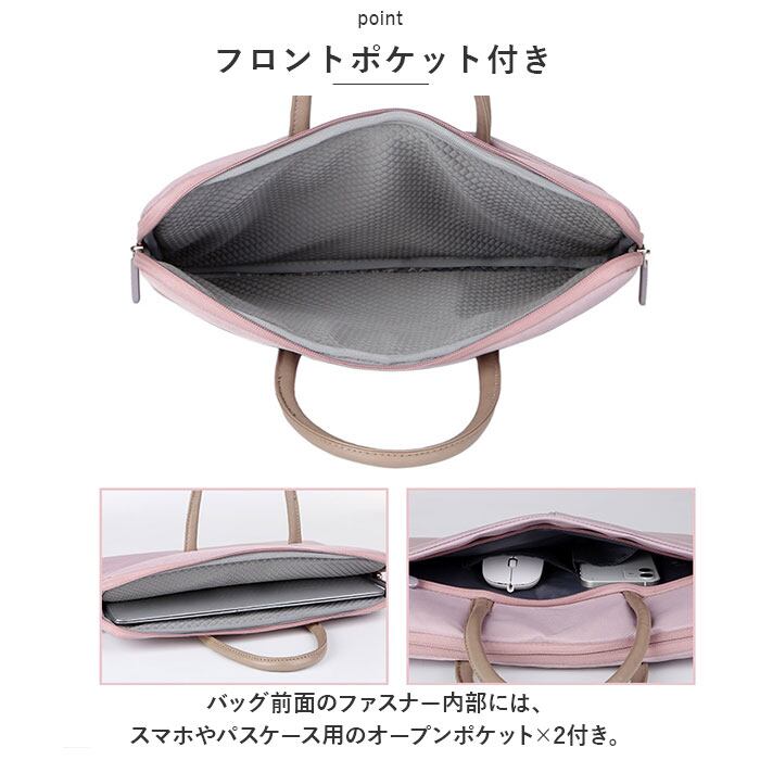 ・バッグ前面のファスナー内部には、スマホやパスケース用のオープンポケット×2付き。