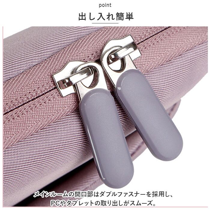 ・メインルーム内部は、滑らかな生地と、凹凸のあるクッション素材が両面からPCを包み込み、キズや衝撃から優しく保護。