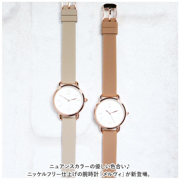 ・ニュアンスカラーの優しい色合い♪ニッケルフリー仕上げの腕時計「メルヴィ」が新登場。