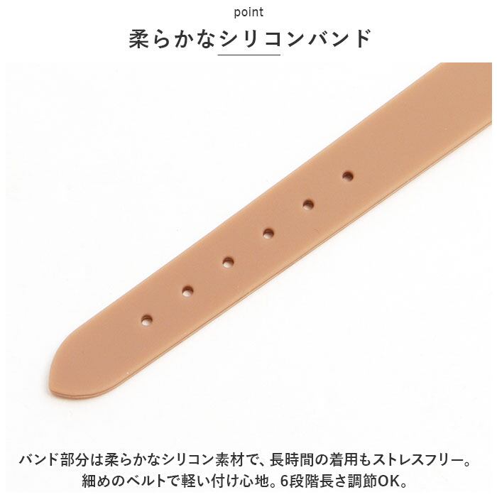 ・バンド部分は柔らかなシリコン素材で、長時間の着用もストレスフリー。細めのベルトで軽い付け心地。6段階長さ調節OK。