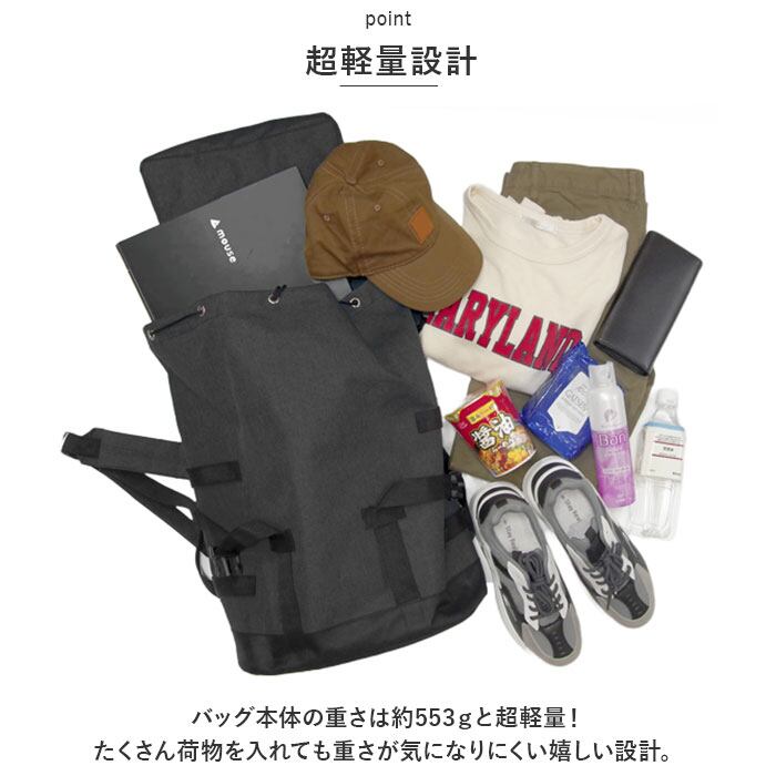 ・バッグ本体の重さは約553gと超軽量!たくさん荷物を入れても重さが気になりにくい嬉しい設計。
