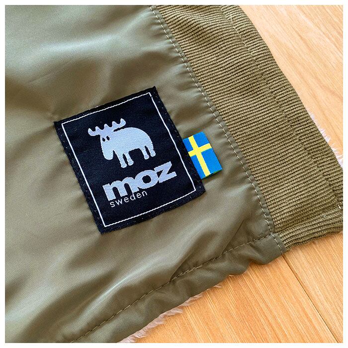 ・mozのトレードマーク「エルク」(ヘラジカ)のイラスト入りブランドロゴがアクセント。