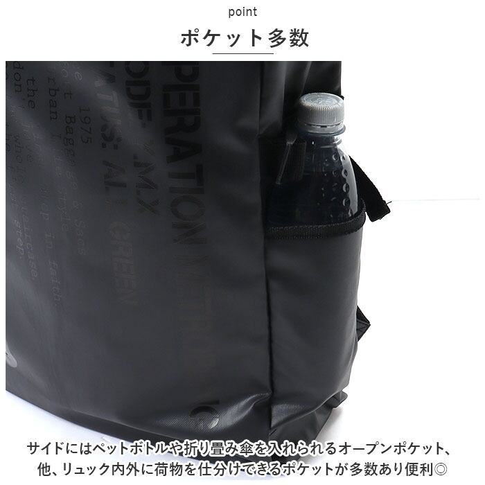・サイドにはペットボトルや折り畳み傘を入れられるオープンポケット、他、リュック内外に荷物を仕分けできるポケットが多数あり便利◎