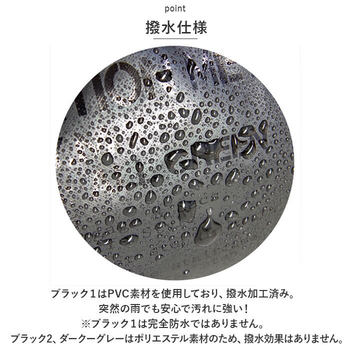 ・ブラック1はPVC素材を使用しており、撥水加工済み。突然の雨でも安心で汚れに強い!