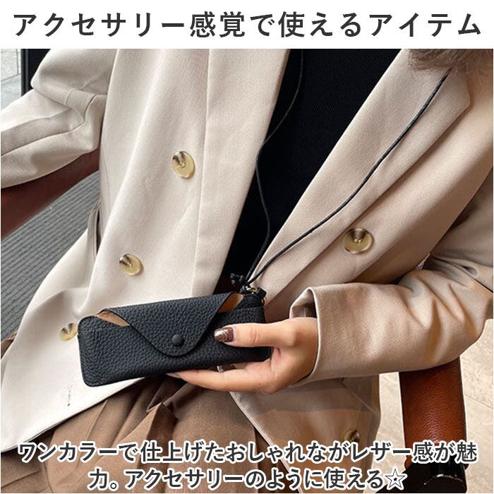 ネックストラップ 眼鏡ケース 通販 メガネケース 革 めがねケース めがねけーす メガネ入れ サングラスケース コンパクト ソフト 薄型 スリム おしゃれ かわいい ボタン シンプル 上品 メガネカバー 老眼鏡 旅行 携帯 保護 持ち歩き メンズ レディース