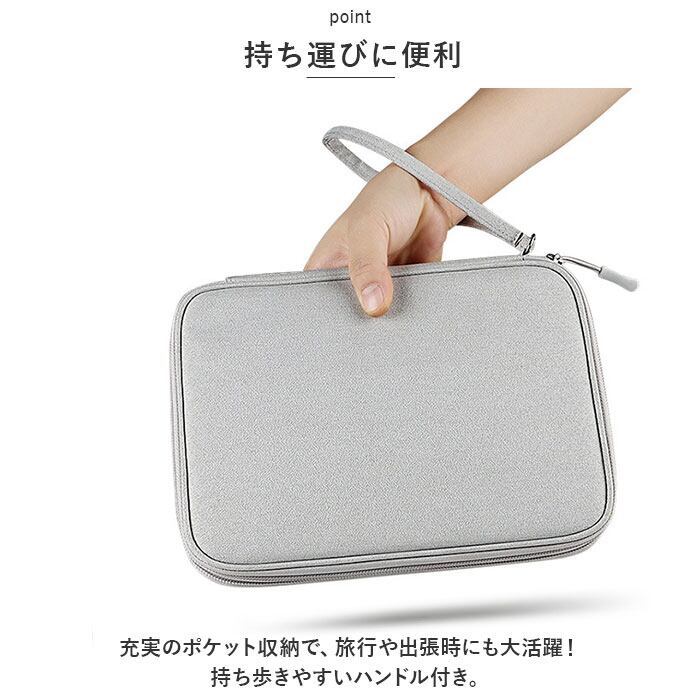 ・充実のポケット収納で、旅行や出張時にも大活躍!持ち歩きやすいハンドル付き。