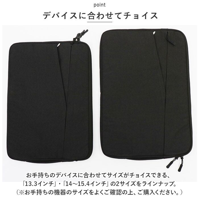 ・お手持ちのデバイスに合わせてサイズがチョイスできる、「13.3インチ」・「14~15.4インチ」の2サイズをラインナップ。(※お手持ちの機器のサイズをよくご確認の上、ご購入ください。)