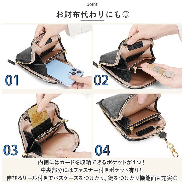 ・スマホがサッと取り出せて便利!多機能で軽量◎レザーが大人可愛い「スマホショルダー リール付き 」が登場♪
