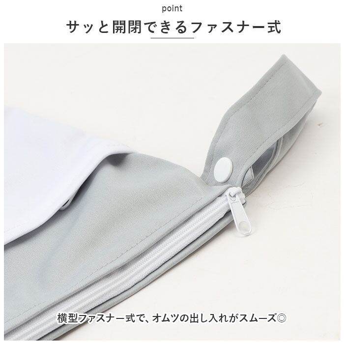 ・横型ファスナー式で、オムツの出し入れがスムーズ◎