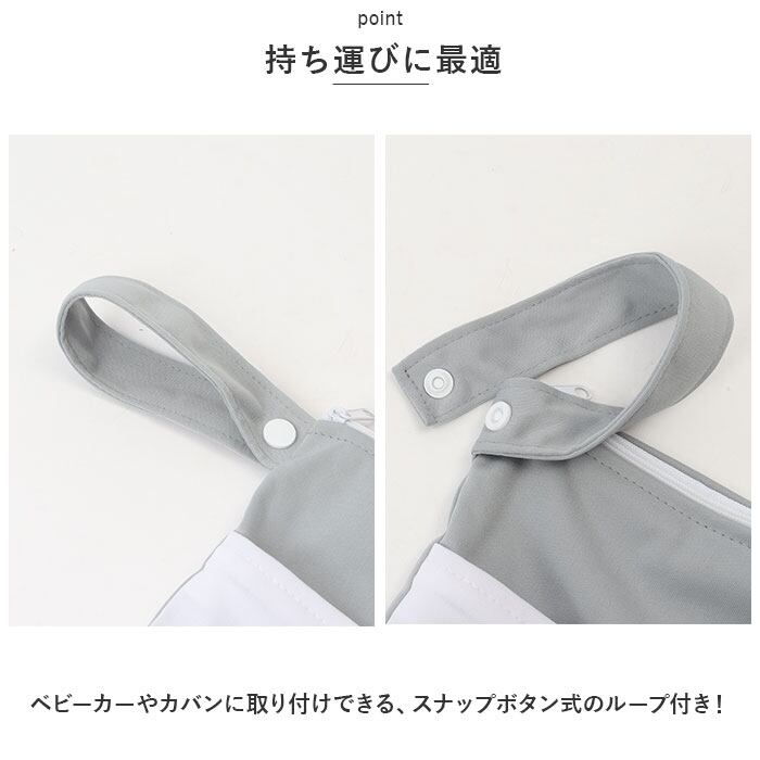 ・ベビーカーやカバンに取り付けできる、スナップボタン式のループ付き!