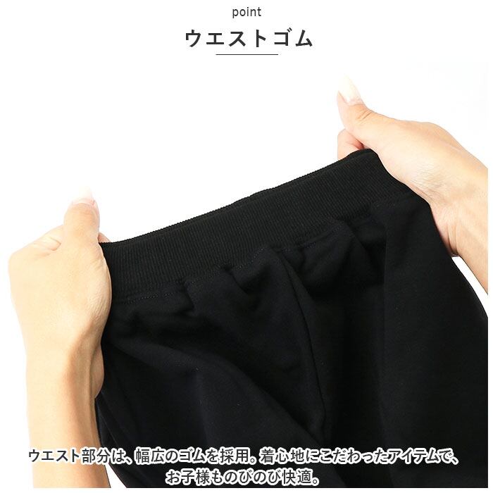 ・ウエスト部分は、幅広のゴムを採用。着心地にこだわったアイテムで、お子様ものびのび快適。