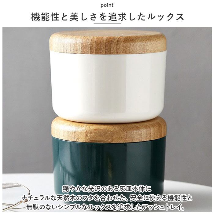・艶やかな光沢のある灰皿本体にナチュラルな天然木のフタを合わせた、安全に使える機能性と無駄のないシンプルなルックスを追求したアッシュトレイ。