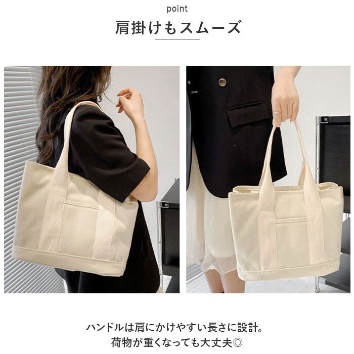 ・収納力があり、お出かけに必要な小物がしっかりまとまるトートバッグ。程よいマチを設け、ソフトな底板入りで持ち運びラクラク。
