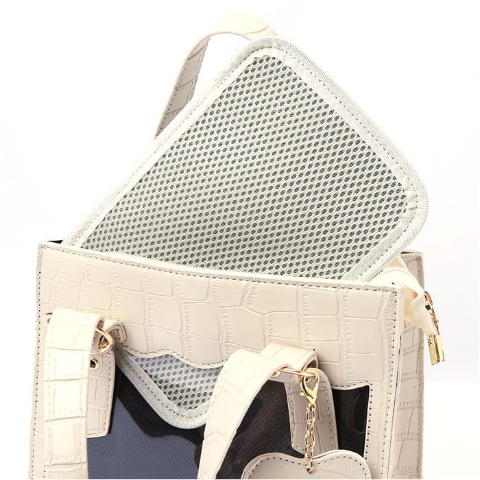 ・バッグ内側・・・クリア窓仕様オープンポケット×1、ファスナーポケット×1