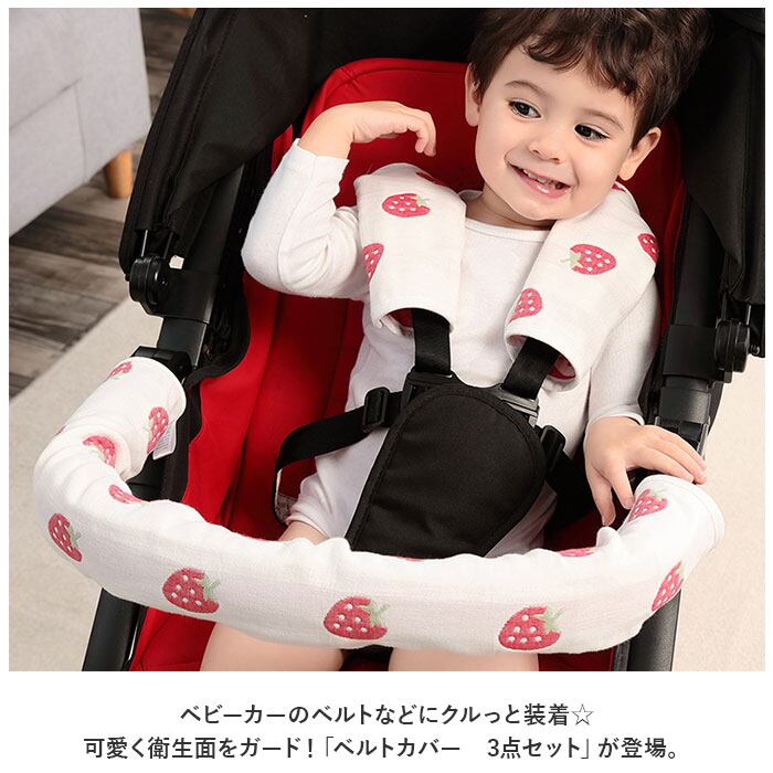 ・ベビーカーのベルトなどにクルっと装着☆可愛く衛生面をガード!「ベルトカバー 3点セット」が登場。