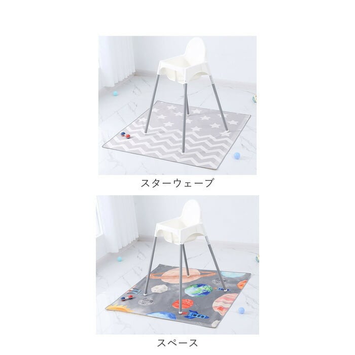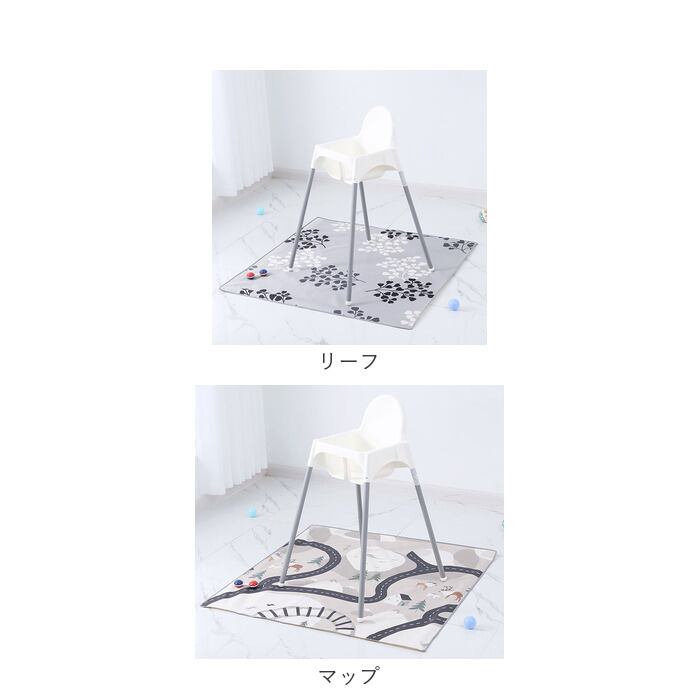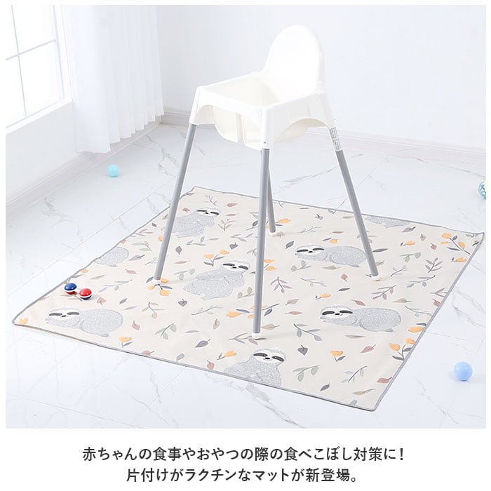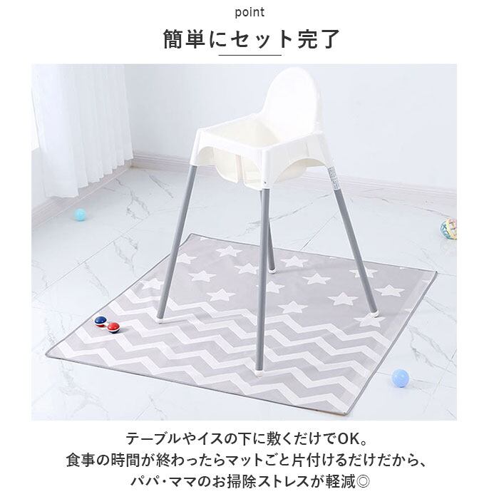 ・テーブルやイスの下に敷くだけでOK。食事の時間が終わったらマットごと片付けるだけだから、パパ・ママのお掃除ストレスが軽減◎
