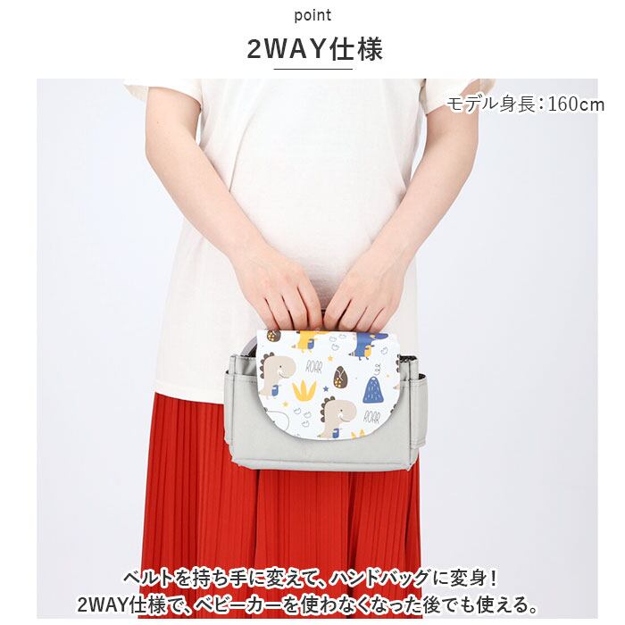 ・ベルトを持ち手に変えて、ハンドバッグに変身!2WAY仕様で、ベビーカーを使わなくなった後でも使える。
