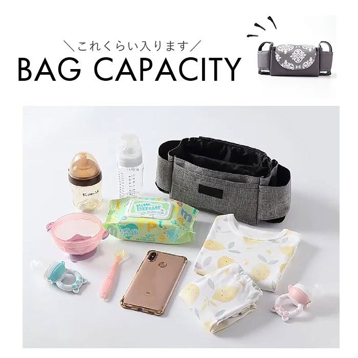 ・外出先で、おむつ・哺乳瓶・おもちゃ・お菓子・スマホ・鍵etc...バッグから取り出したいものはいっぱい。ベビーカーの持ち手に取り付けることで、欲しいものを手元からサッと出せる!