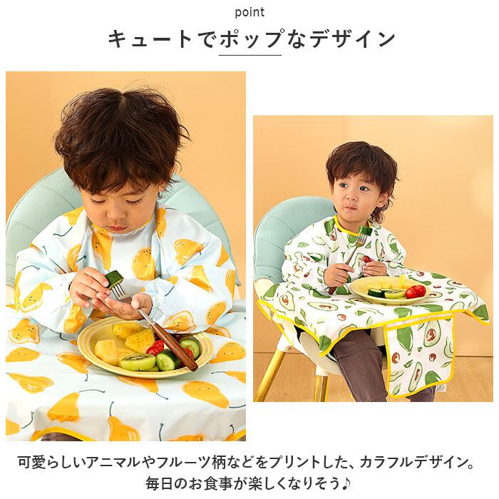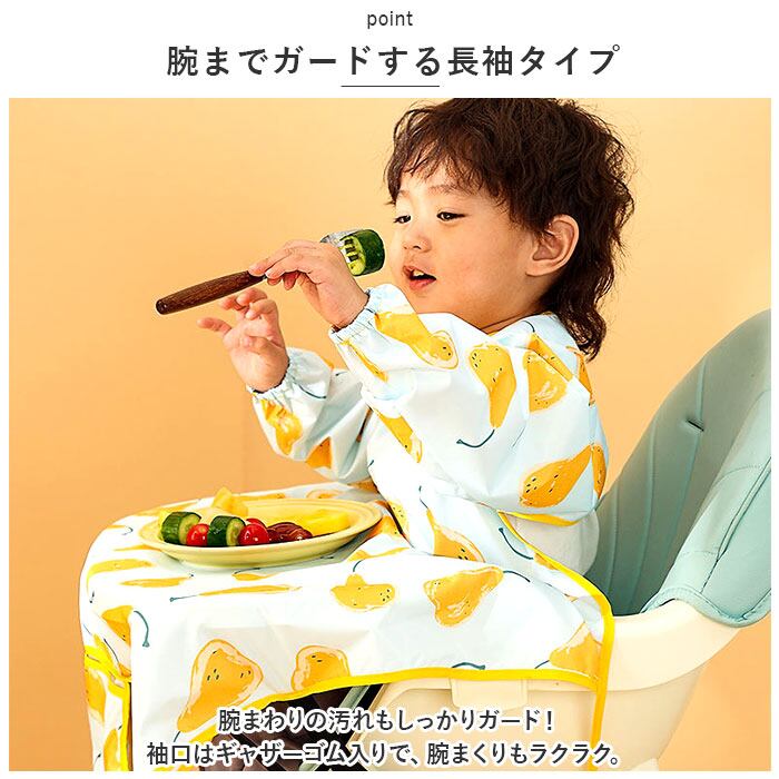 お食事エプロン テーブル 一体型 長袖 通販 食事エプロン エプロン お食事スタイ ベビースタイ ロング 子供用 子供 撥水 食べこぼし ベビー こども 子ども 赤ちゃん コンパクト 保育園 離乳食