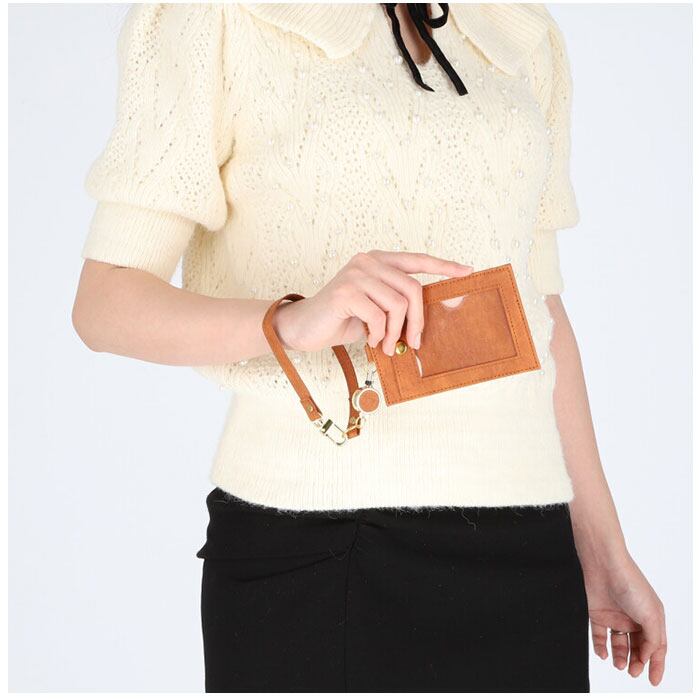 ・表面のポケットは中身が見えるクリア窓仕様で、社員証やICカード、定期券を入れるのに最適。カードのこぼれ落ちを防ぐスナップボタン開口。