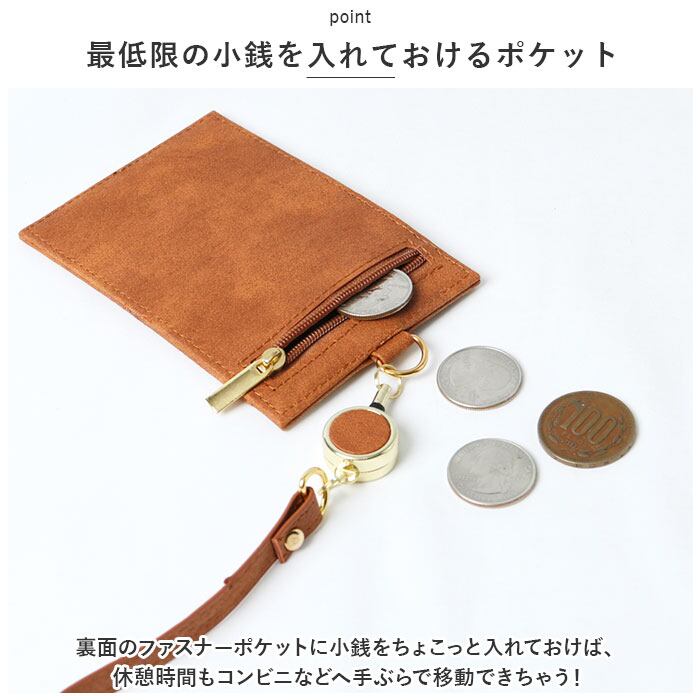 ・裏面のファスナーポケットに小銭をちょこっと入れておけば、休憩時間もコンビニなどへ手ぶらで移動できちゃう!
